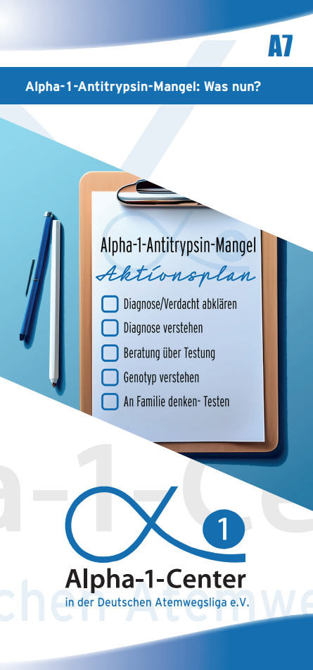 ⇒ Alpha-1-Antitrypsin-Mangel (Flyer A2) | ⇒ Ernährung bei Leberbeteiligung (Flyer A3) | ⇒ Rehabilitation (Flyer A4) | ⇒ Grad der Behinderung (Flyer A5) |